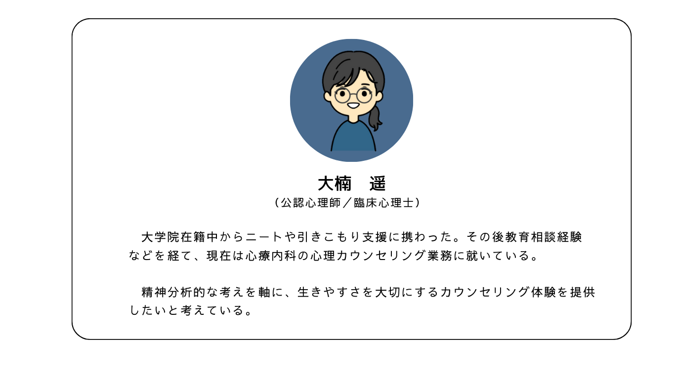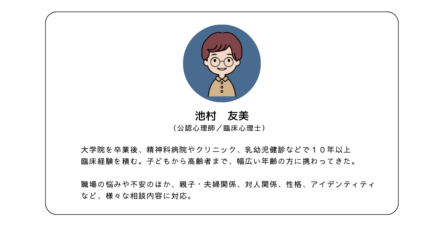 むしろ人に自分のことを話すのが苦手な方や、話したけれど分かってもらえなかった方にこそ、ご利用いただきたいと思っております。