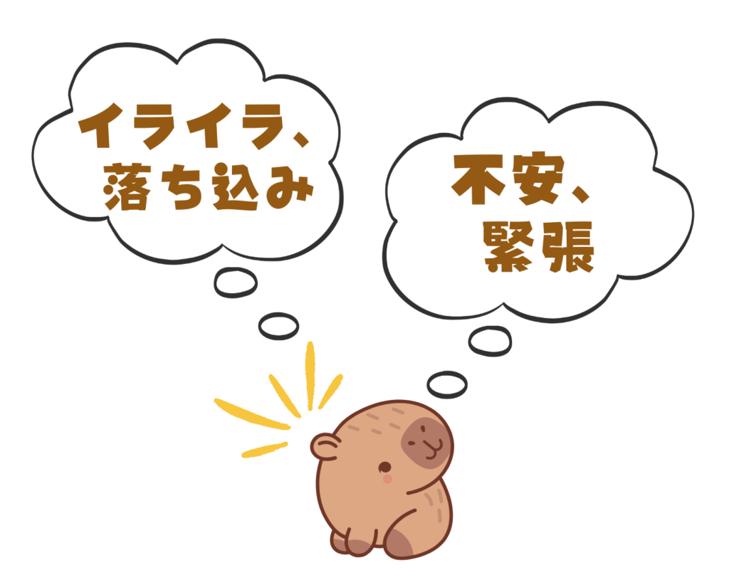 カピバラのカピオは、2週間ストレス日記をつける中で、何度も同じような考えが頭に浮かんでいることに気づきました。